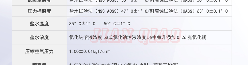產(chǎn)品型號:按需選型 品牌:劍 喬 用途:鹽霧試驗箱可分為:溫度/濕度/鹽霧復合式試驗機,步入式鹽干濕試驗室,步入式鹽水噴霧試驗室,鹽水噴霧試驗機,可程式鹽水噴霧試驗機,電腦式鹽水噴霧試驗機,精密型鹽水噴霧試咨詢熱線:13829135130