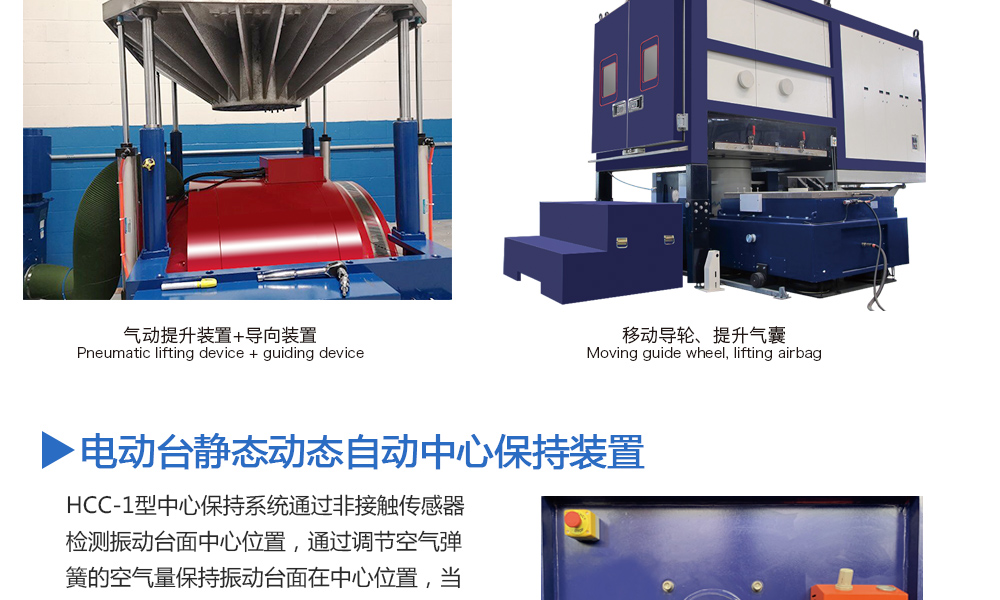 用途:擴展臺面是否需要輔助支撐與導向裝置,取決于用戶產品試驗的重量和偏載情況。劍喬公司提供不同規格的承載氣囊及不同形式的導向裝置。配備輔助支撐和導向裝置可以大大提高設備的承載能